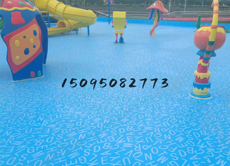 本項(xiàng)目位于內(nèi)蒙古自治區(qū),為室外新建混凝土水上樂園項(xiàng)目,基礎(chǔ)面水泥砂漿找平處理,采用字母圖案顆粒防滑泳池膠膜,滿刮膠搭邊熱熔焊接工藝,整體效果如下: